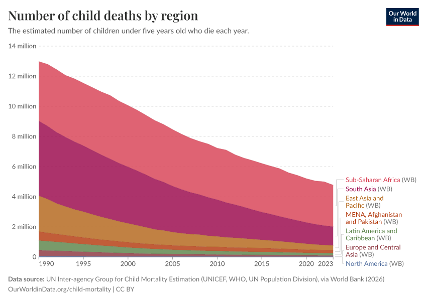 On this page, you will find data and research on child mortality across the world, how it has changed, its causes, and what we can do about it.