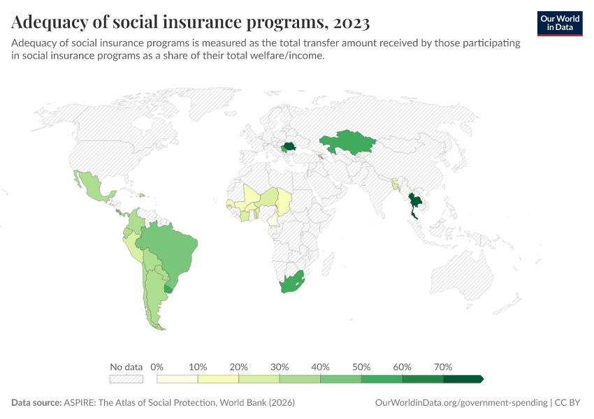 “Data Page: Adequacy of social insurance programs”. Our World in Data (2026). Data adapted from ASPIRE: The Atlas of Social Protection, World Bank. Retrieved from https://refactor-responseset-ergonom.owid.pages.dev:8789/20260202-181317/grapher/adequacy-of-social-insurance-programs.html [online resource] (archived on February 2, 2026).How to cite this data