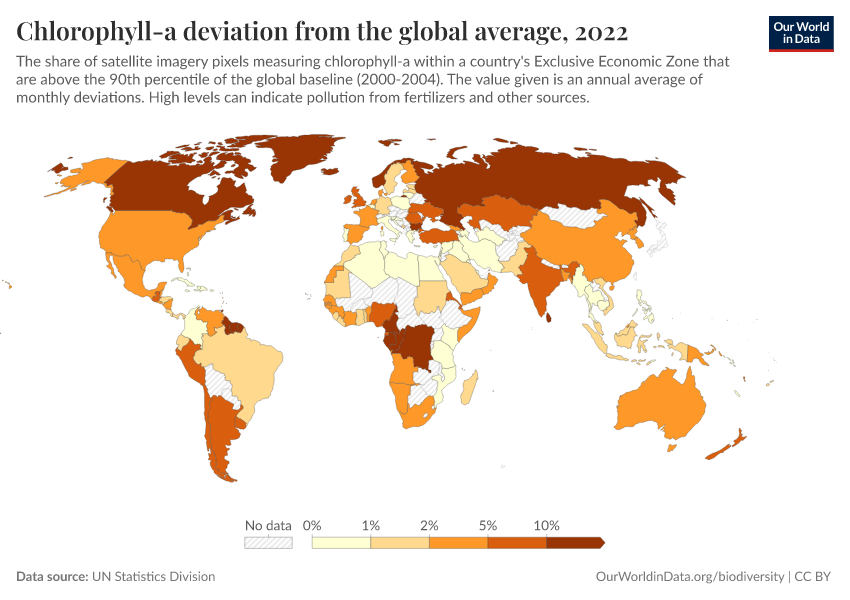“Data Page: Chlorophyll-a deviation from the global average”. Our World in Data (2026). Data adapted from UN Statistics Division. Retrieved from https://refactor-responseset-ergonom.owid.pages.dev:8789/20260130-180113/grapher/chlorophyll-a-deviation-from-the-global-average.html [online resource] (archived on January 30, 2026).How to cite this data