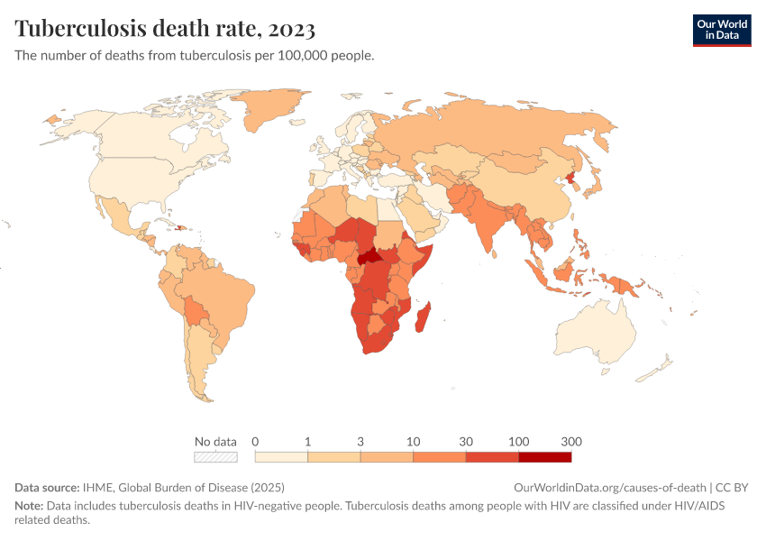 “Data Page: Tuberculosis death rate”, part of the following publication: Esteban Ortiz-Ospina and Max Roser (2016) - “Global Health”. Data adapted from IHME, Global Burden of Disease. Retrieved from https://refactor-responseset-ergonom.owid.pages.dev:8789/20260211-174736/grapher/death-rate-from-tuberculosis-gbd.html [online resource] (archived on February 11, 2026).How to cite this data