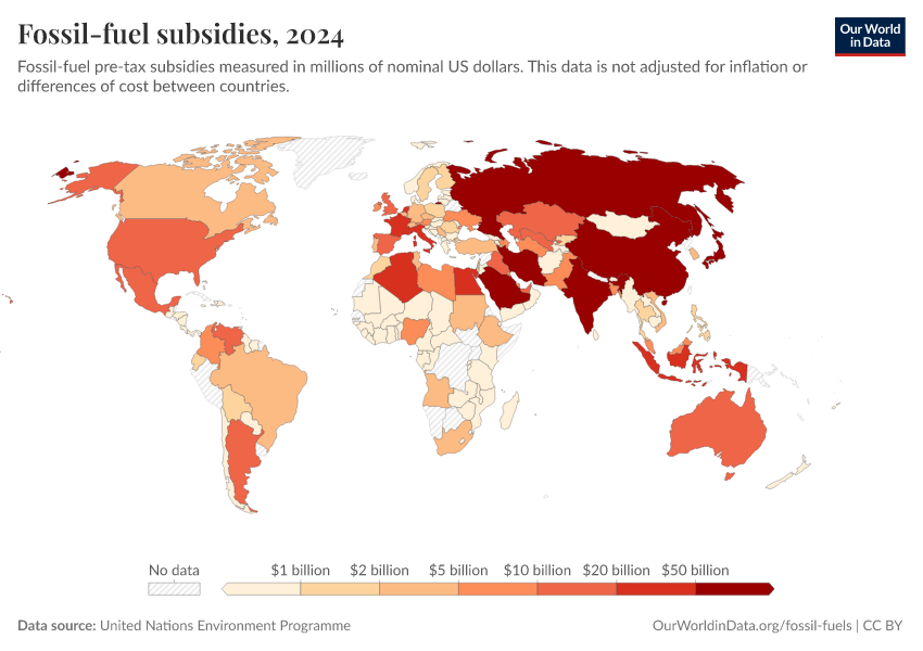“Data Page: Fossil-fuel subsidies”. Our World in Data (2026). Data adapted from United Nations Environment Programme. Retrieved from https://refactor-responseset-ergonom.owid.pages.dev:8789/20260130-180113/grapher/fossil-fuel-subsidies.html [online resource] (archived on January 30, 2026).How to cite this data