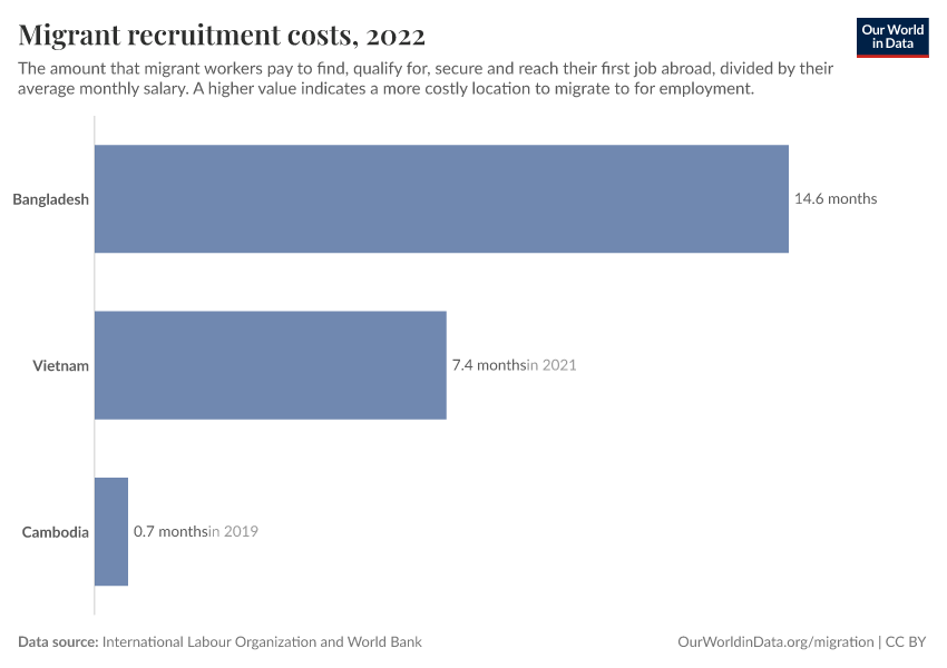 “Data Page: Migrant recruitment costs”. Our World in Data (2026). Data adapted from International Labour Organization and World Bank. Retrieved from https://refactor-responseset-ergonom.owid.pages.dev:8789/20251120-211749/grapher/migrant-recruitment-costs.html [online resource] (archived on November 20, 2025).How to cite this data