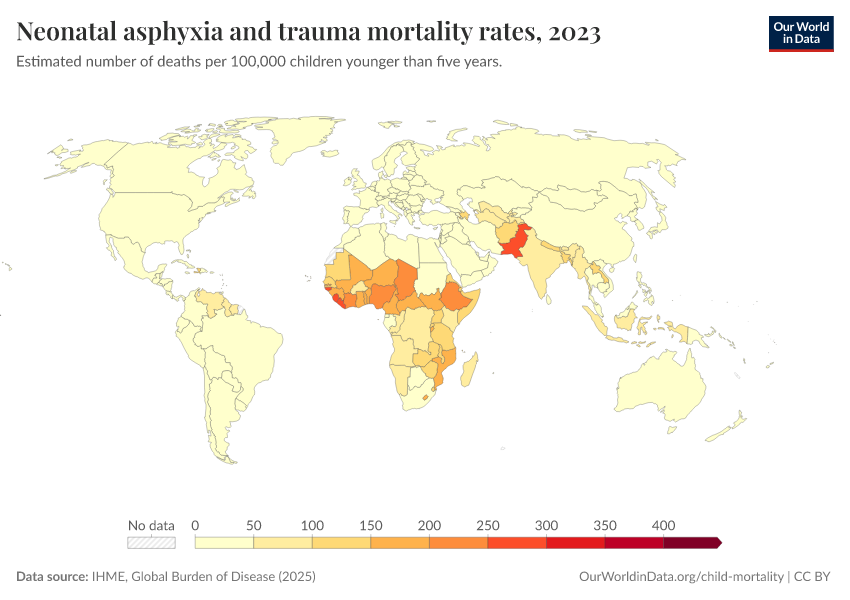 IHME, Global Burden of Disease (2025) – with major processing by Our World in Data. “Neonatal asphyxia and trauma mortality rates” [dataset]. IHME, Global Burden of Disease, “Global Burden of Disease - Deaths” [original data]. Retrieved February 26, 2026 from https://refactor-responseset-ergonom.owid.pages.dev:8789/20260211-174736/grapher/mortality-neonatal-asphyxia-and-trauma.html (archived on February 11, 2026).