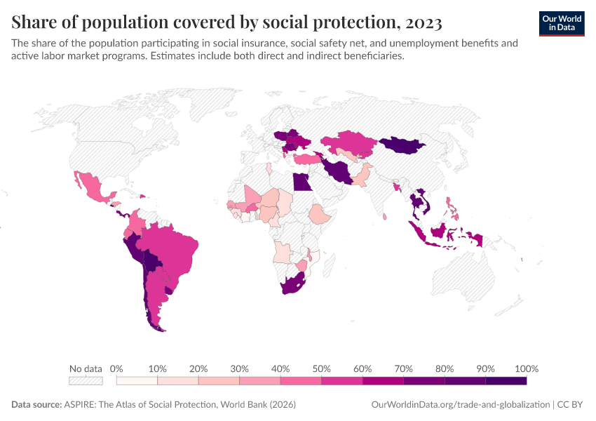 “Data Page: Share of population covered by social protection”. Our World in Data (2026). Data adapted from ASPIRE: The Atlas of Social Protection, World Bank. Retrieved from https://refactor-responseset-ergonom.owid.pages.dev:8789/20260202-181317/grapher/share-of-population-covered-by-social-protection.html [online resource] (archived on February 2, 2026).How to cite this data