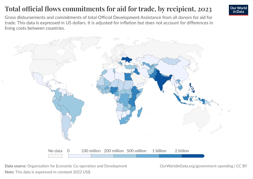 “Data Page: Total official flows commitments for aid for trade, by recipient”. Our World in Data (2026). Data adapted from Organisation for Economic Co-operation and Development. Retrieved from https://refactor-responseset-ergonom.owid.pages.dev:8789/20260130-180113/grapher/total-oda-for-aid-for-trade-by-recipient.html [online resource] (archived on January 30, 2026).How to cite this data