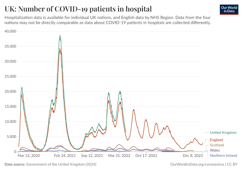 Government of the United Kingdom (2024) – with minor processing by Our World in Data. “UK: Number of COVID-19 patients in hospital” [dataset]. Government of the United Kingdom, “UKHSA data dashboard” [original data]. Retrieved February 26, 2026 from https://refactor-responseset-ergonom.owid.pages.dev:8789/20250909-093708/grapher/uk-covid-hospital-patients.html (archived on September 9, 2025).