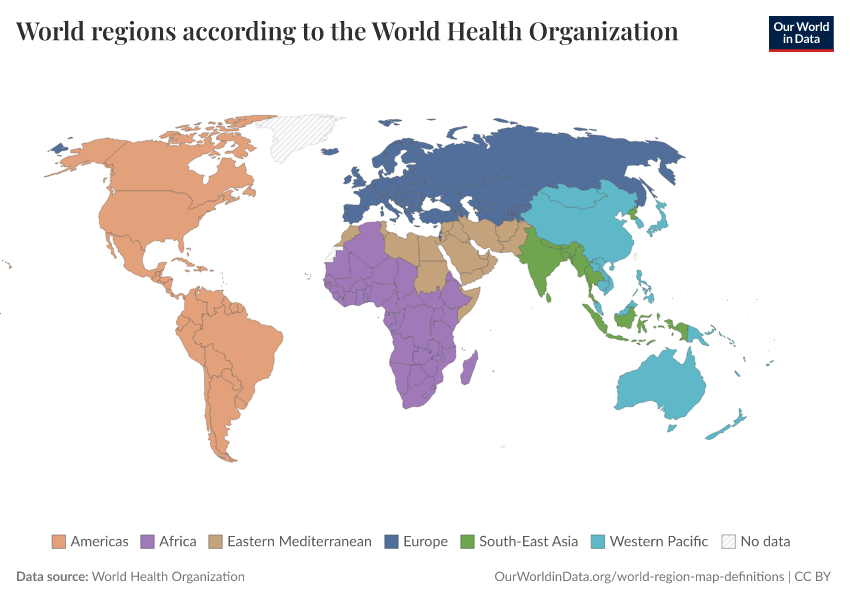 “Data Page: World regions according to the World Health Organization”. Our World in Data (2026). Data adapted from World Health Organization. Retrieved from https://refactor-responseset-ergonom.owid.pages.dev:8789/20260224-141219/grapher/who-regions.html [online resource] (archived on February 24, 2026).How to cite this data