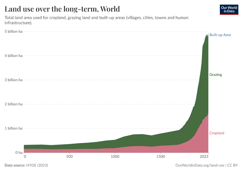 Hannah Ritchie and Max Roser (2019) - “Land Use” Published online at OurWorldinData.org. Retrieved from: 'https://refactor-responseset-ergonom.owid.pages.dev/land-use' [Online Resource]BibTeX citation