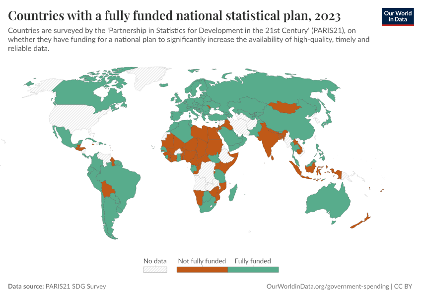 This indicator measures the number of countries with a fully-funded statistical plan, differentiated by source of funding.