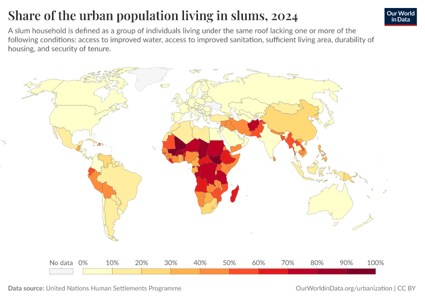 The most recent global estimates suggest just under 1-in-4 people in urban areas live in slum households.